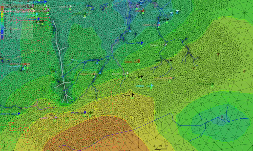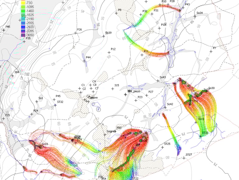 PHREATIS dimensionne le système de rabattement tenant compte des spécificités hydrogéologiques, géotechniques et environnementales afin d'assurer la mise à sec des terrains tout en préservant la ressource en eau souterraine et en maitrisant les risques sous-jacents (tassements, conflits d'usage, dispersion de polluants...).