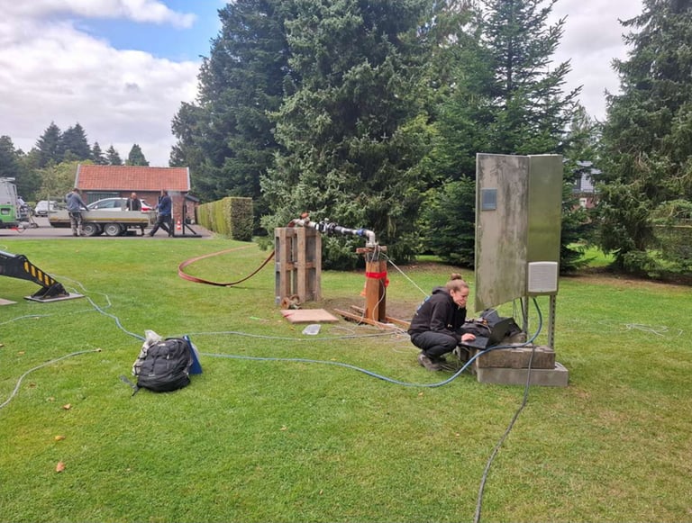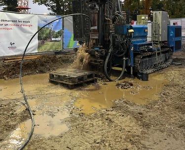 campagne de forage et d'essais hydrogéologiques (réalisation et interprétations de pompages d'essai, essais traçages, diagraphies, mesures de flux, échantillonnage et analyse,...)
